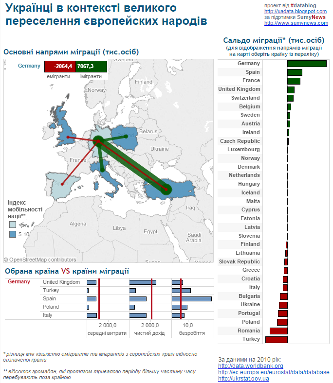 Куди і звідки переїжджають європейці, чи є залежність між економічними показниками країн та напрямами міграції, і на що розраховують українці в Європі? - #datablog пропонує спробувати розібратися самостійно за допомогою інтерактивного проекту "Українці в контексті великого переселення європейських народів".